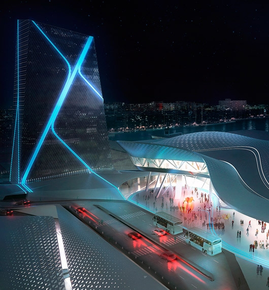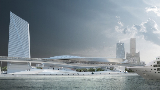 Voici le gagnant du deuxième prix pour le projet de terminal portuaire de Kaohsiung par Hani Rashid et Lise Anne Couture de Asymptote Architecture en collaboration avec Kris Yao des Artech Architectes .
