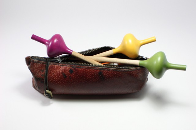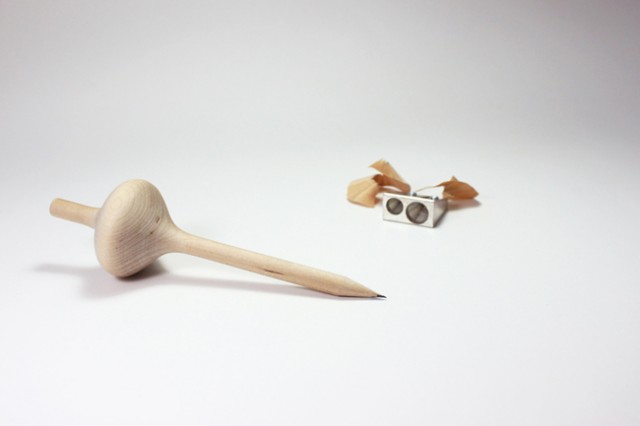 Crayon et en même temps toupie, voici Spincil: pile la mine 2B vous permet de dessiner; face, la partie toupie à son sommet vous replonge en enfance. Plus vous taillez le crayon, plus la toupie s’affole. De forme a priori simple, sa réalisation s’est avérée complexe car Spincil est fait d’un seul tenant verticalement. Cet objet est donc tourné artisanalement à la main et ne peut être industrialisé.
